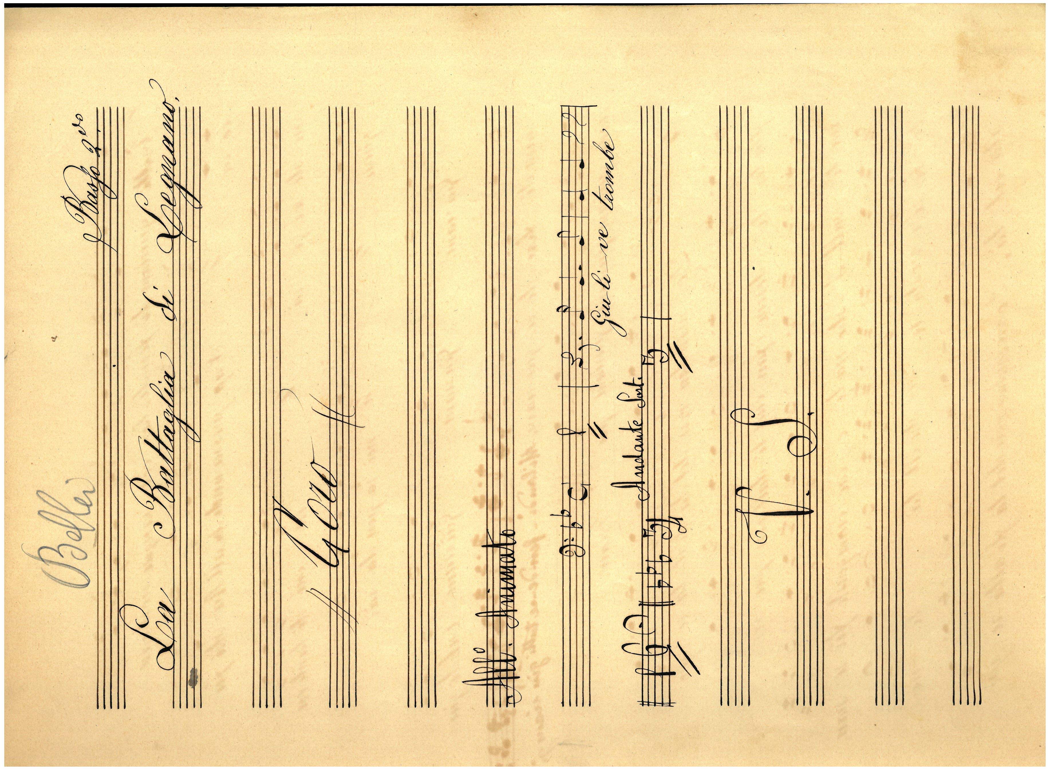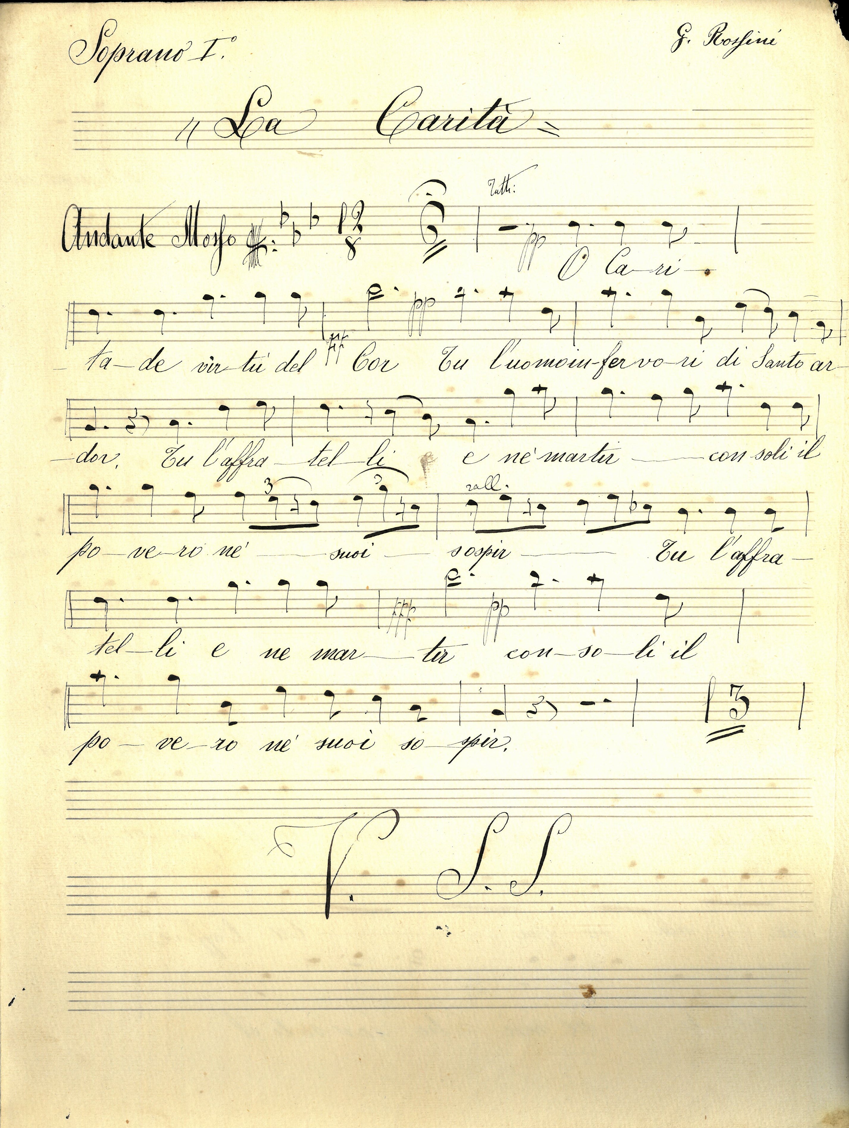 Tratto sottile, ancora ottocentesco; testo calligrafico e inclinato a destra