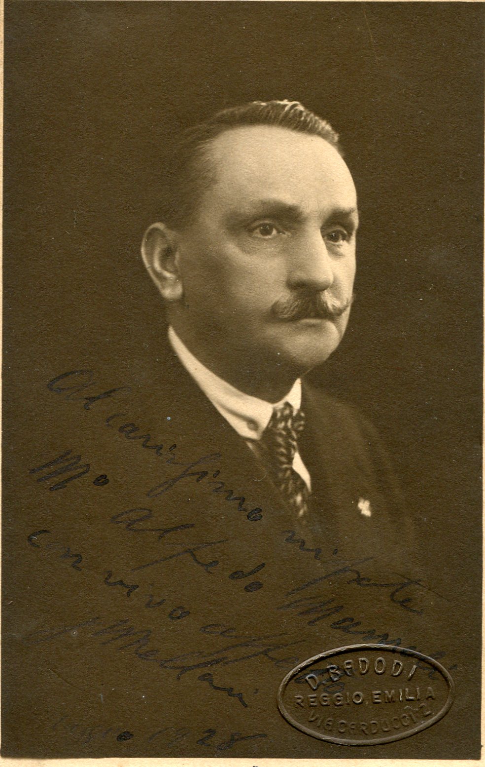 Pietro Melloni in una fotografia del 1928, appartenuta e dedicata dal compositore ad Alfredo Mamoli