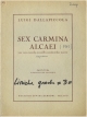 *Sex carmina Alcaei : una voce canenda, nonnullis comitantibus musicis : canones diversi, motu recto contrarioque, simplices ac duplices, cancrizantes, etc., super seriem unam tonorum duodecim / Luigi Dallapiccola ; [testo di Alceo] ; [traduzione di Salvatore Quasimodo] Partitura e riduzione per pianoforte Milano : Suvini Zerboni, ©1946 1 partitura (32 p.) ; 32 cm