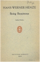 *Being beauteous : Kantate auf das gleichnamige Gedicht aus "Les Illuminations" (1872/73) von Arthur Rimbaud : für Koloratur-Sopran, Harfe und vier Violoncelli : 1963 / Hans Werner Henze Studien-Partitur Mainz : B. Schott's Söhne, ©1964 1 partiturina (22 p.) ; 23 cm